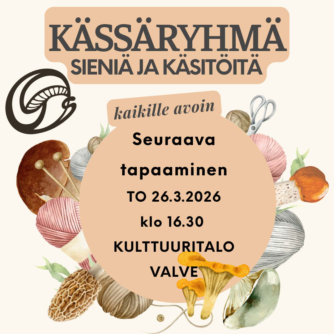 Kässäpiiri Kulttuuritalo Valveen kahvila Ke 25.2. klo 16.30 alkaen Tämä on kaikille avointa toimintaamme Vuosi on vaihtunut, ja käsityöpiirimme kokoontuu jälleen! Olet tervetullut, käsityön kera tai…