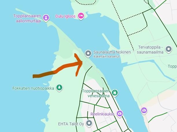 Kokoonnumme Oulun Toppilansaareen, aivan Pitkänmöljäntien toisessa päässä olevalle parkkipaikalle (ks. kuva). Tule mukaan yksin tai kaverin kanssa, tämä on kaikille avoin tapahtuma!